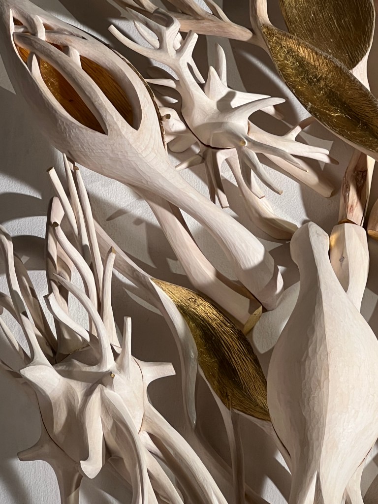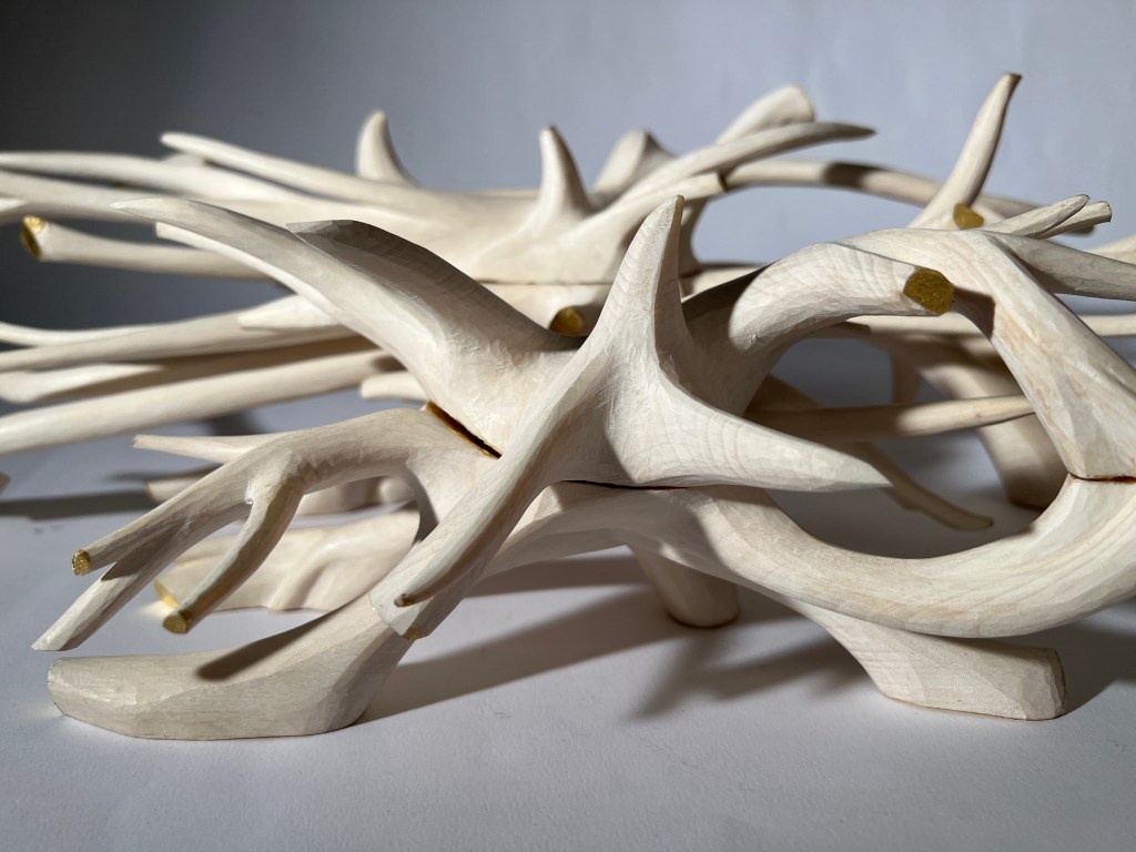 The collective noun I use for my sculptures is “forest”. I imagine brain cells as a dense forest where the cells live intertwined on a microscopic scale. Hidden within our skulls, they are impossible to see. Translated to a macro scale and made out of wood, they can be seen and touched. The forest facilitate curiosity, wondering and questions about what humans are, and how we experience our surroundings and ourself.