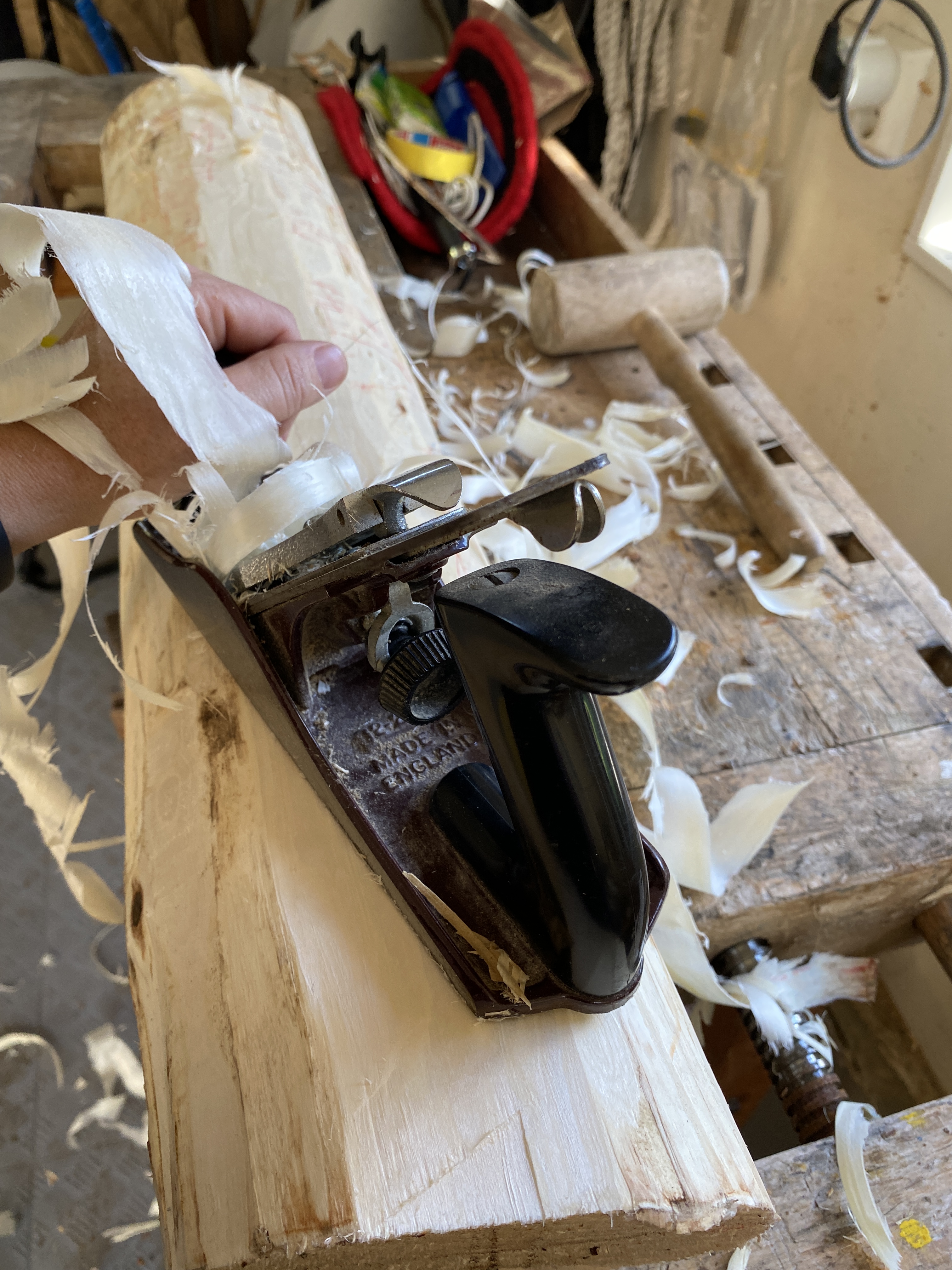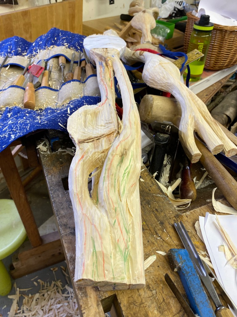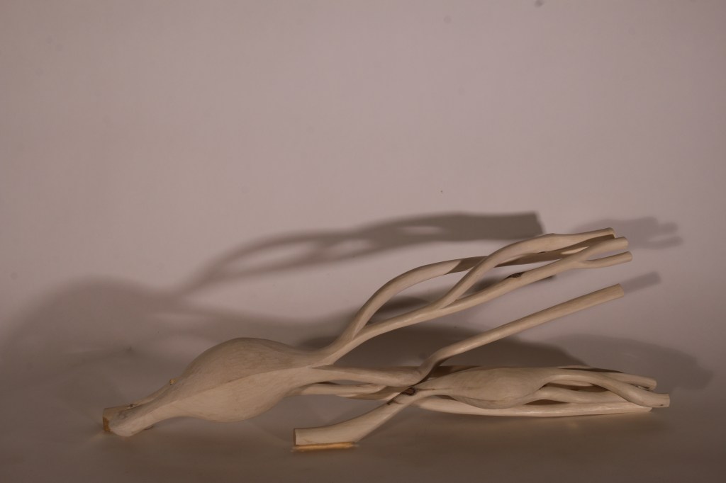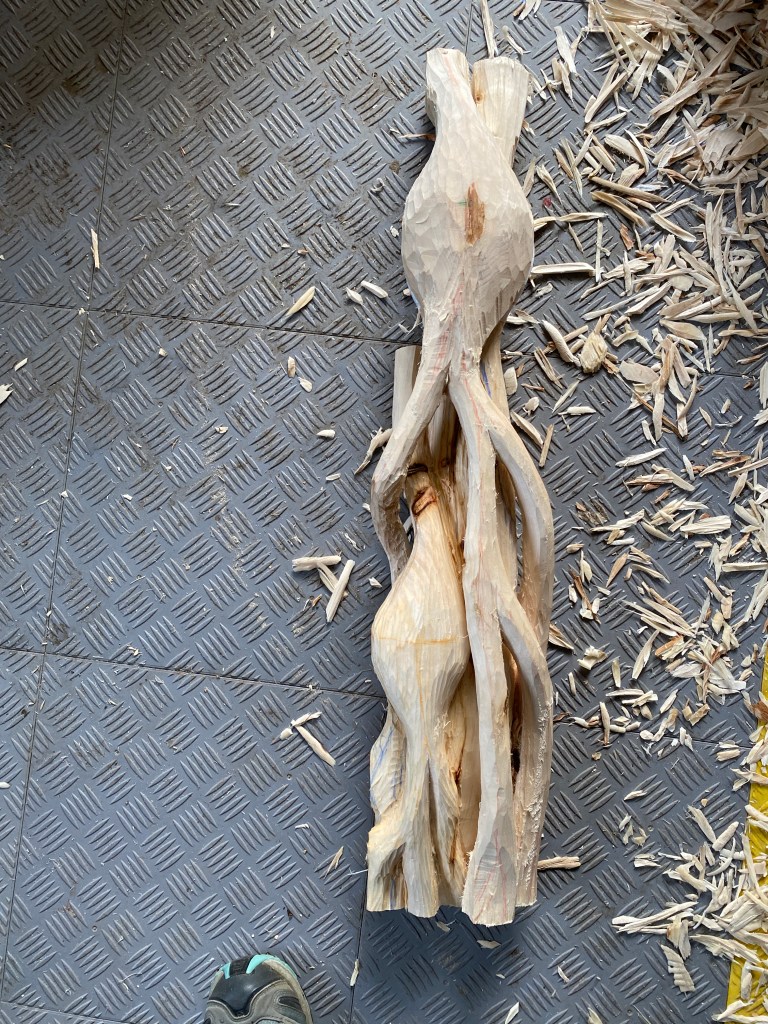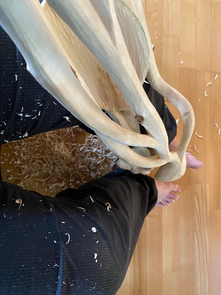 - Materials: Aspen wood from Telemark, Norway and gold leaf metal. Cut and waxed finish.